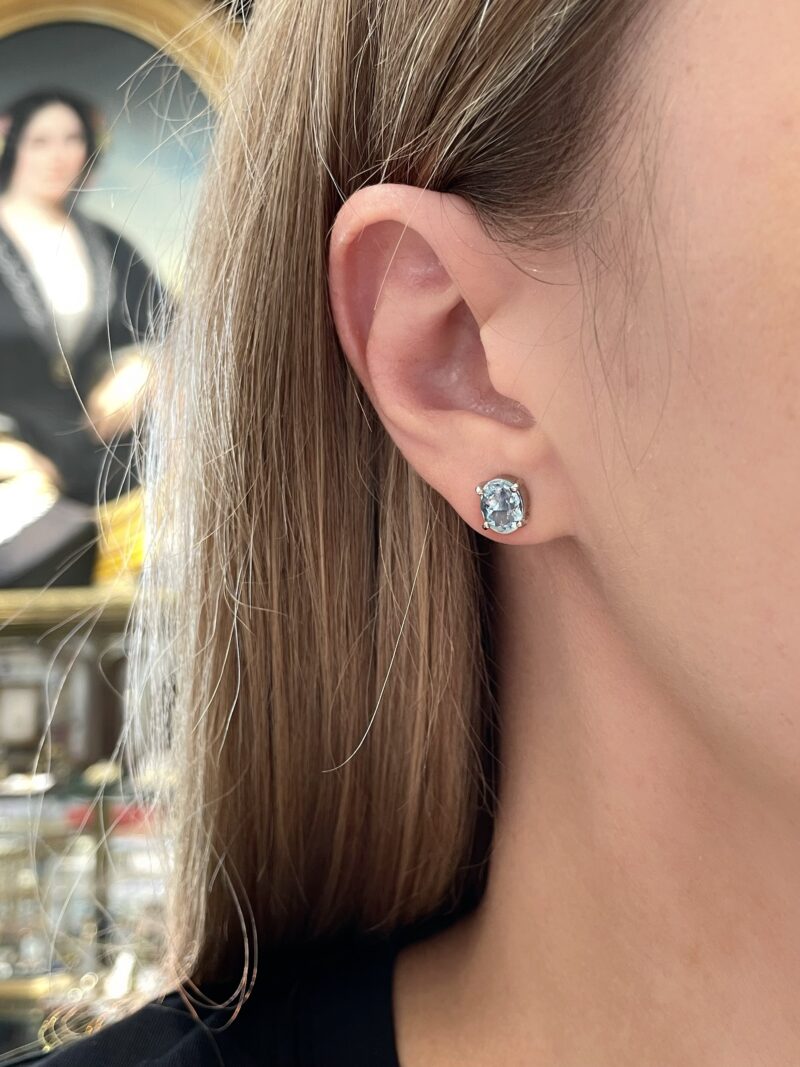 Akvamarinai: 2vnt., ovalios formos, 2.00ct, žalsvai mėlyna spalva (gB 2/2), VVS