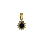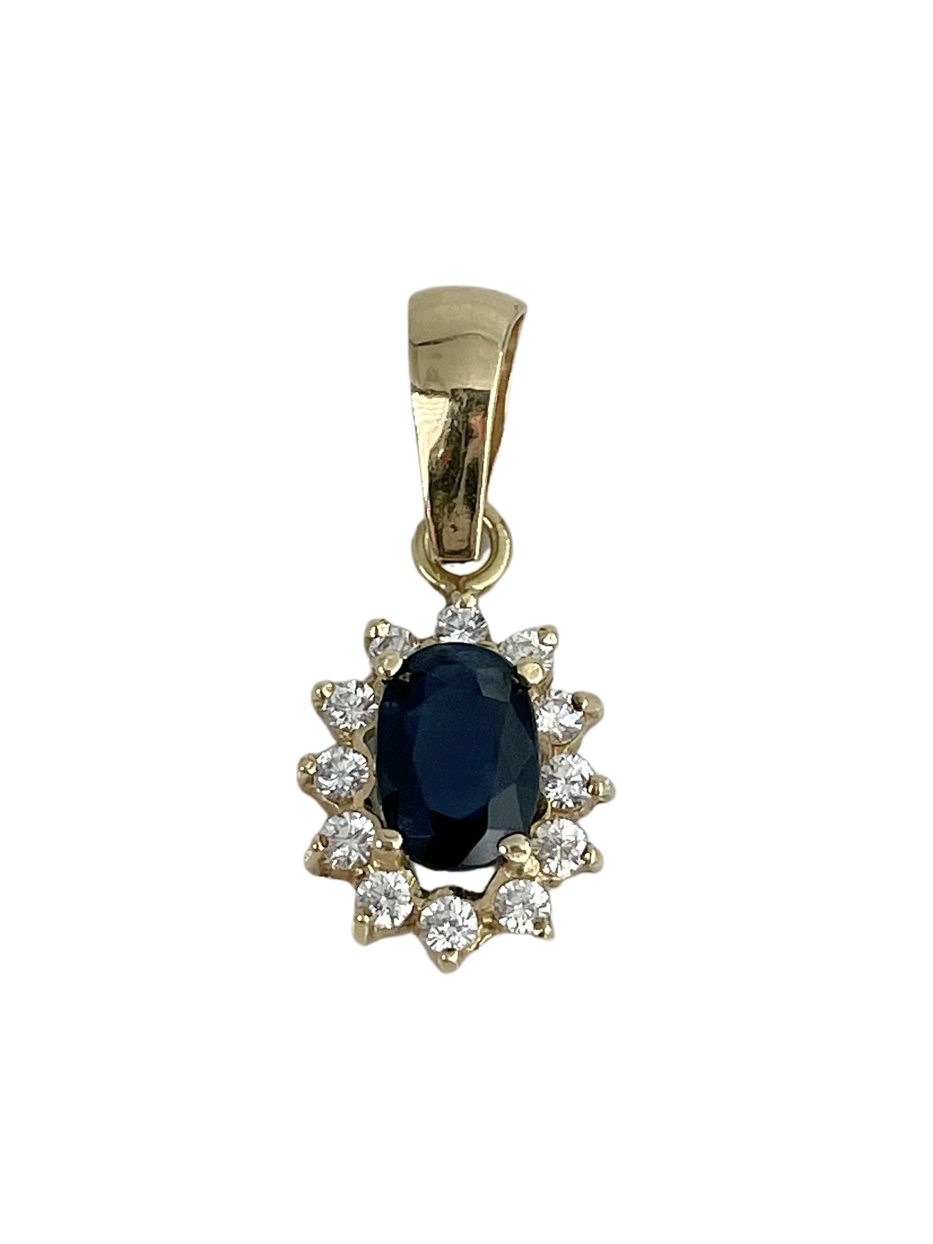 Pakabukas su safyru ir cirkoniais