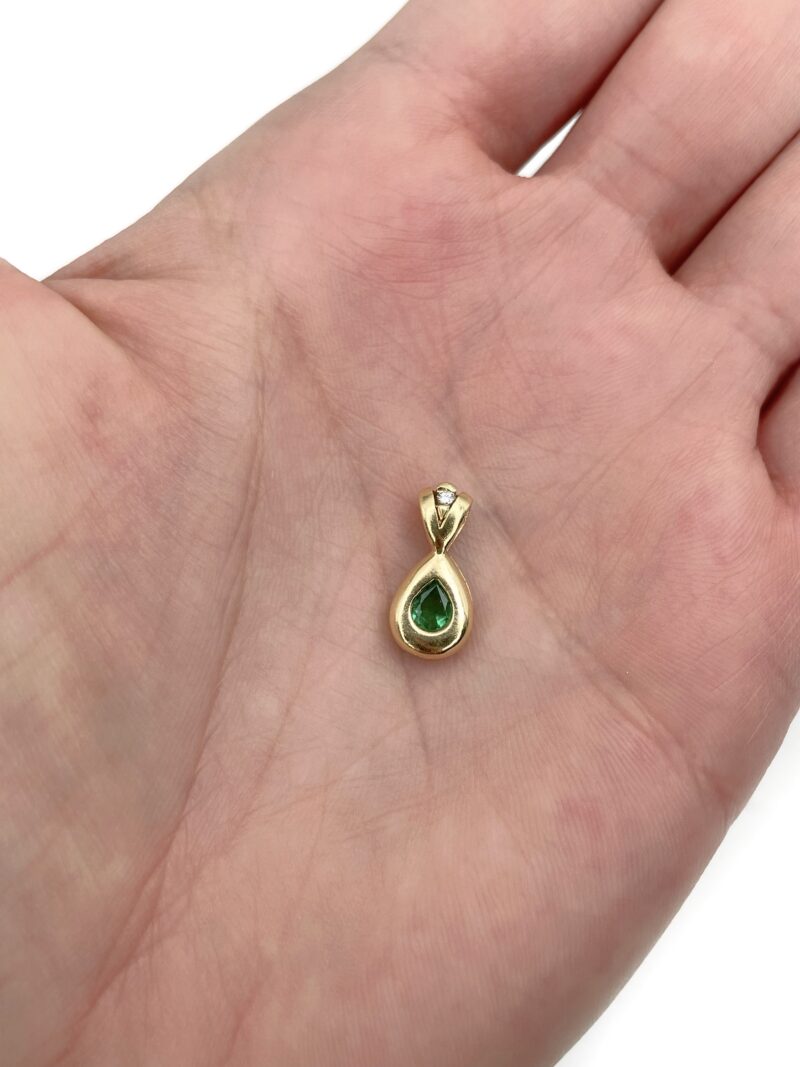 Smaragdas: 1vnt., kriaušės formos, 0.18ct, labai silpnai melsvai žalia spalva (vslbG 5/4), SI