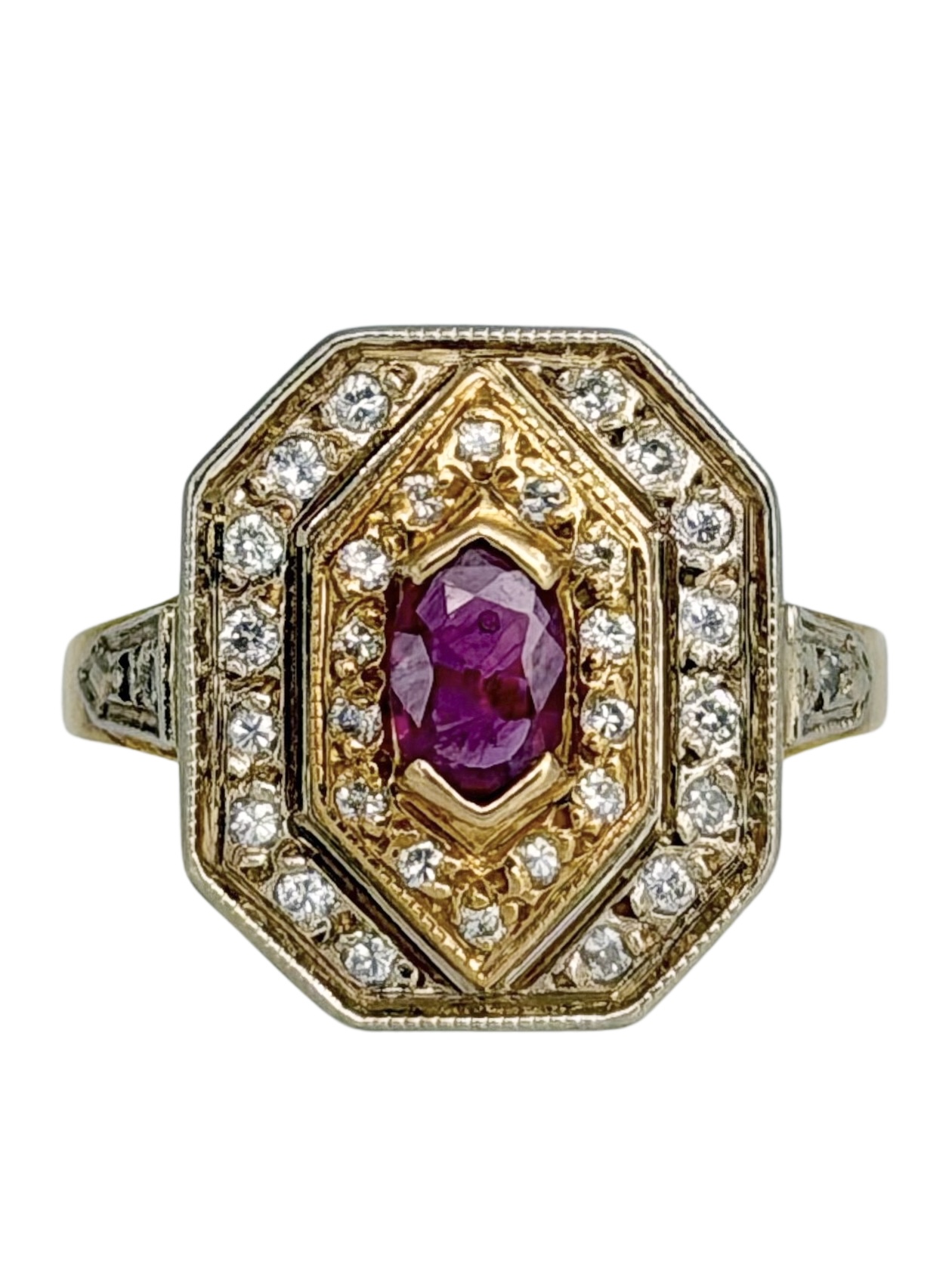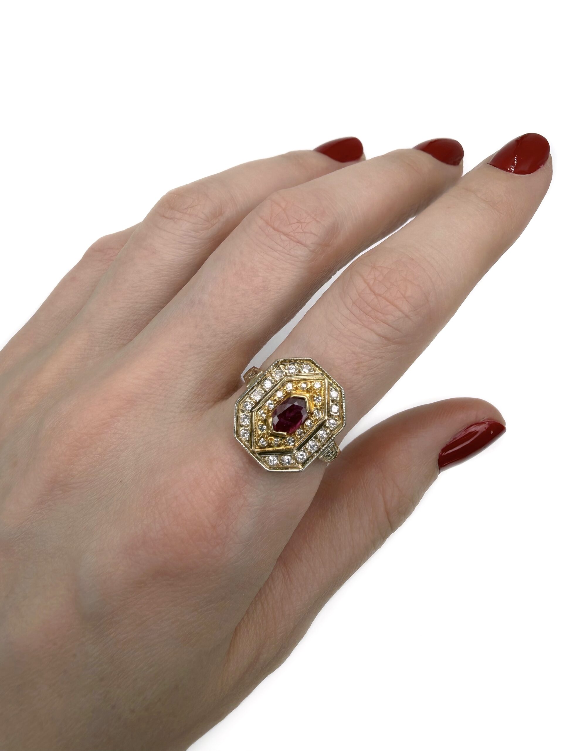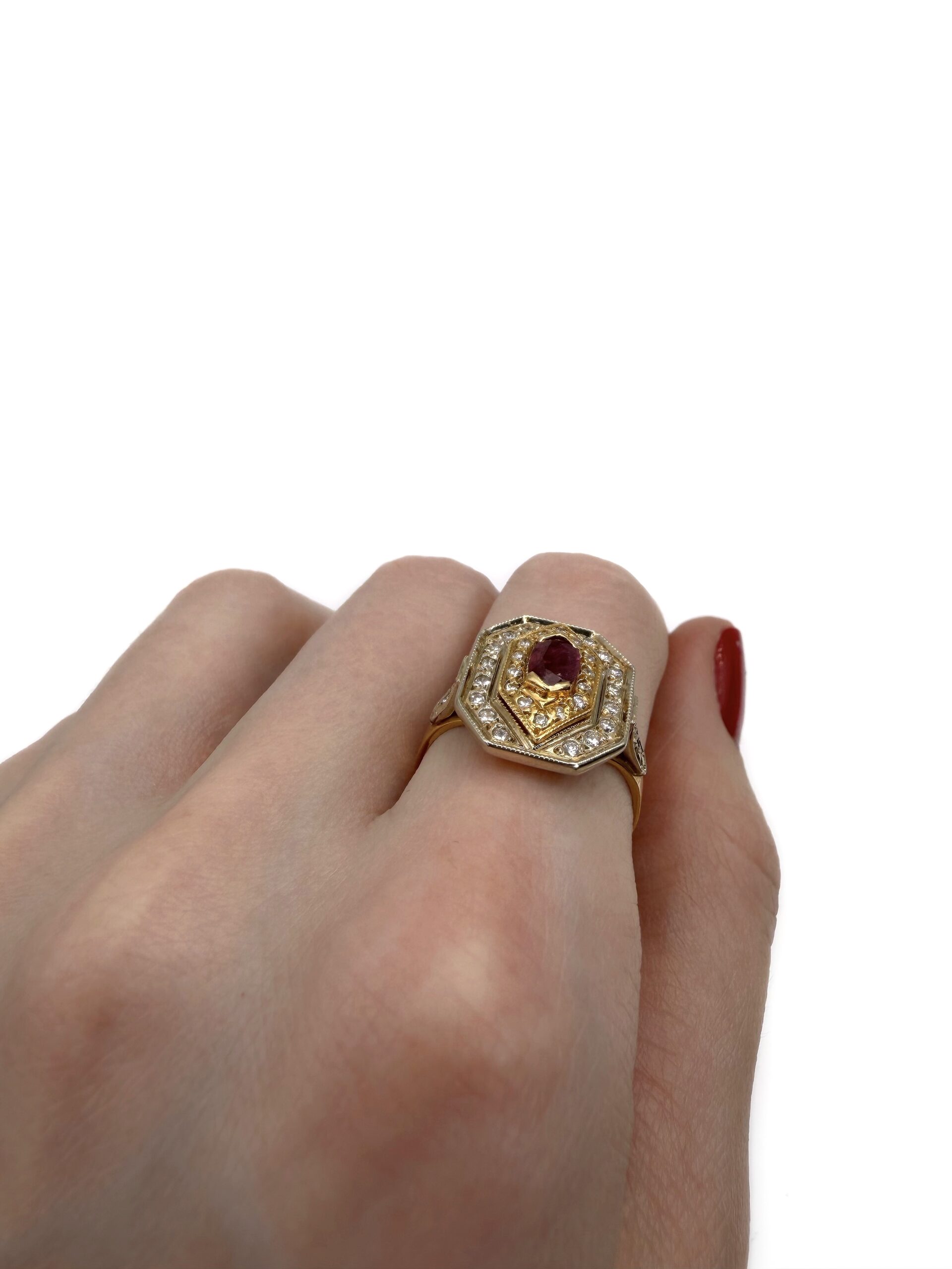 Žiedas su rubinu ir deimantais