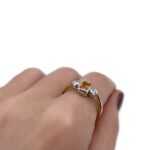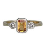 Safyras: 1vnt., smaragdinio šlifavimo, 0.70ct, oranžinė geltona spalva (oY 4/4), VS