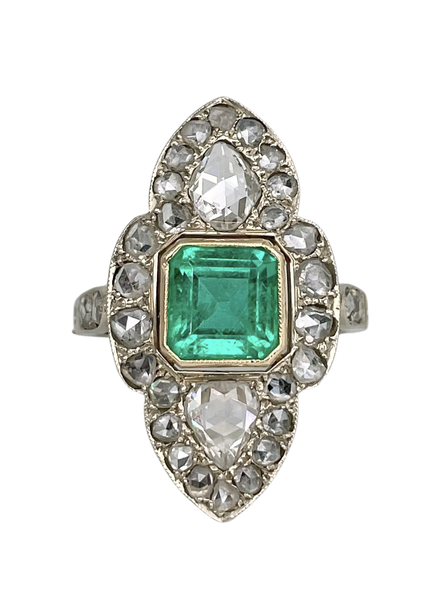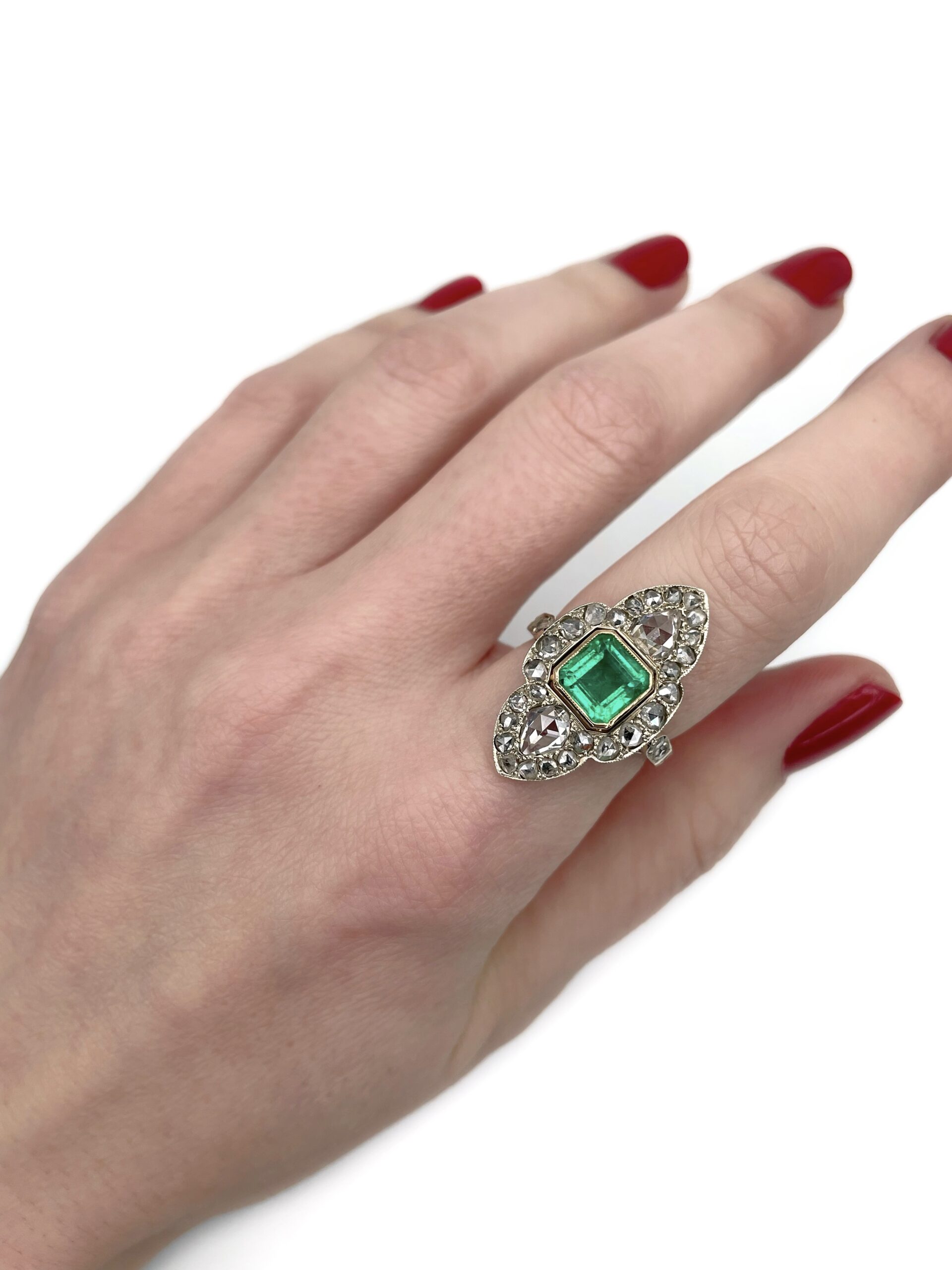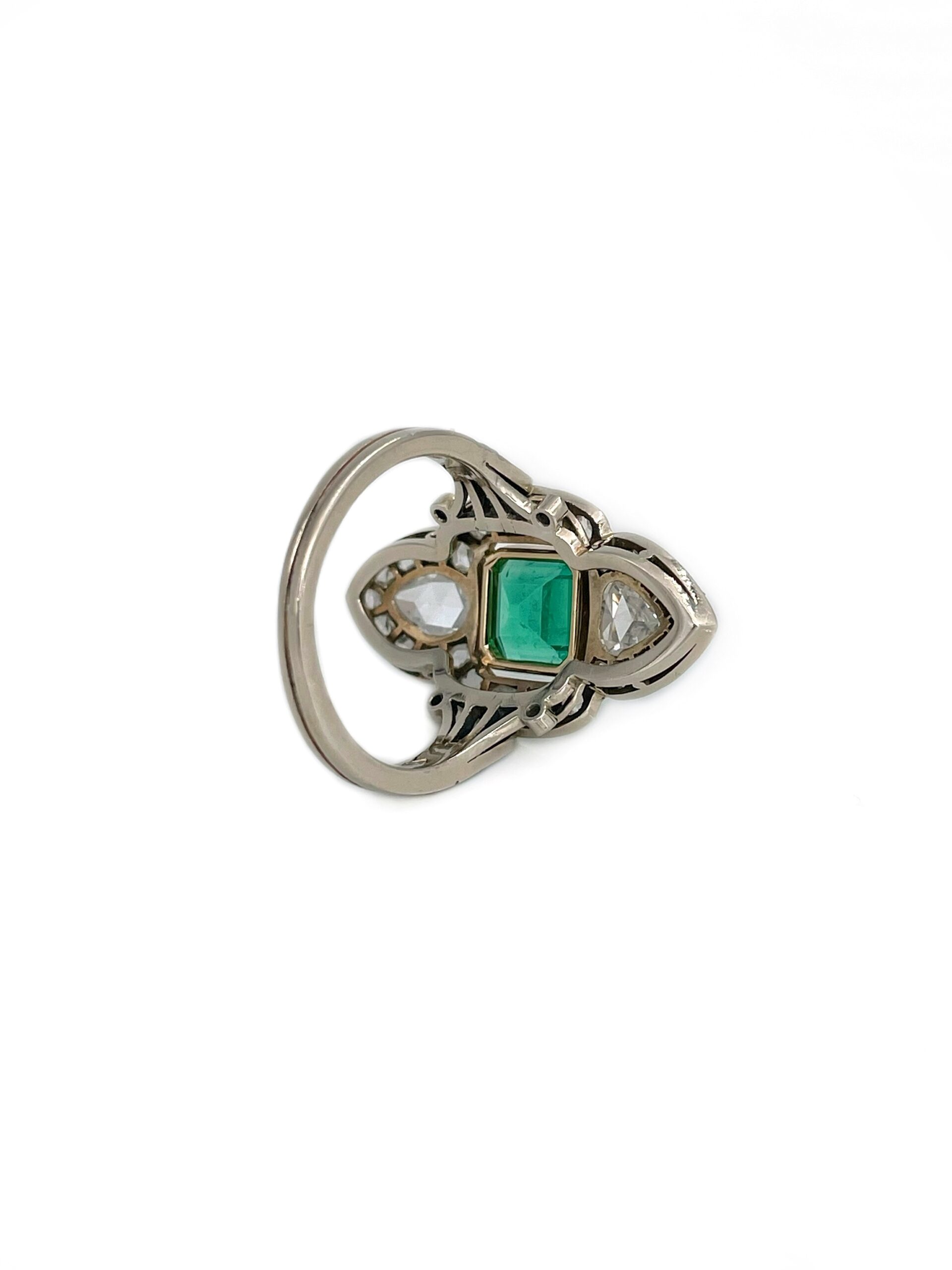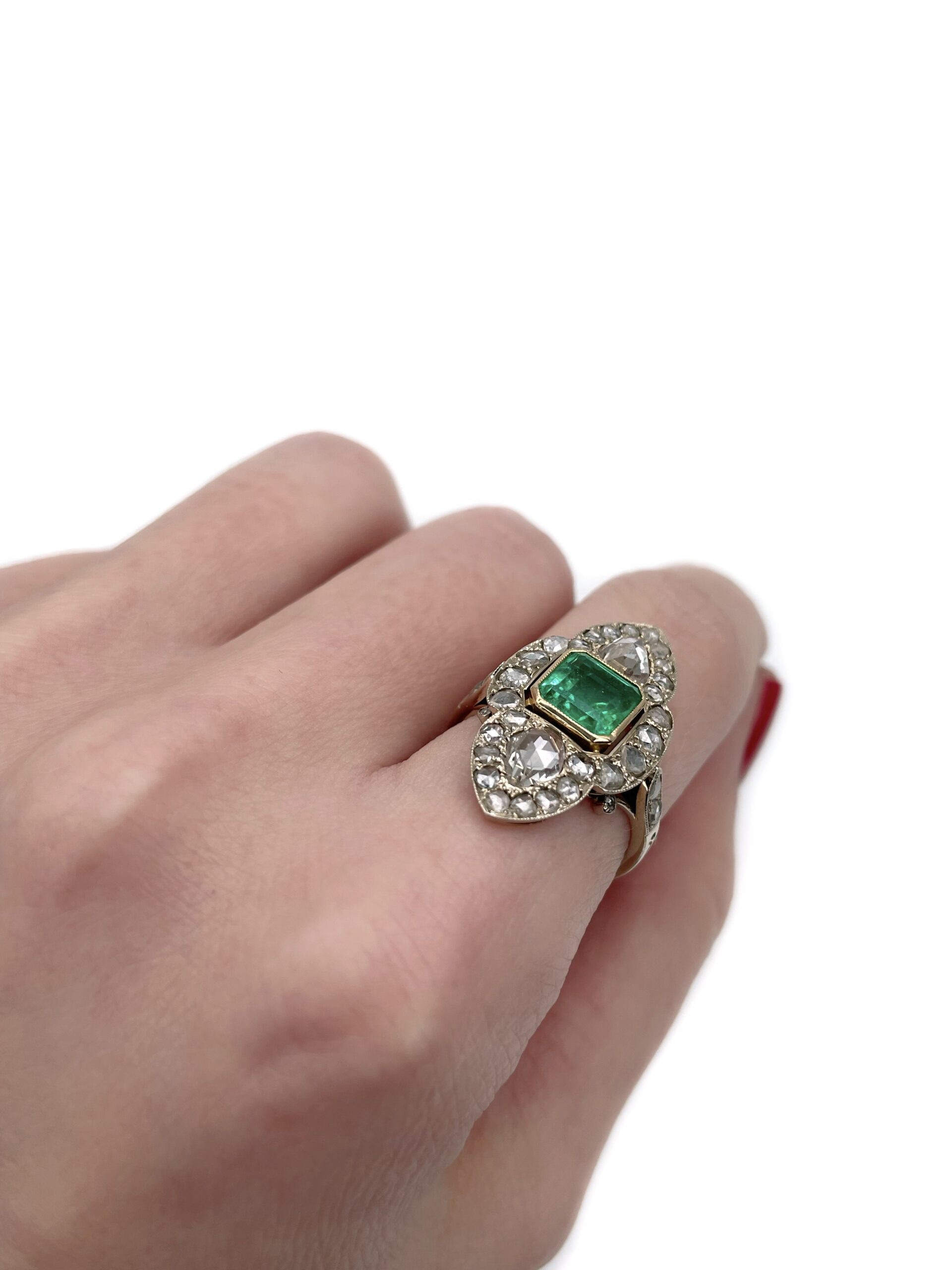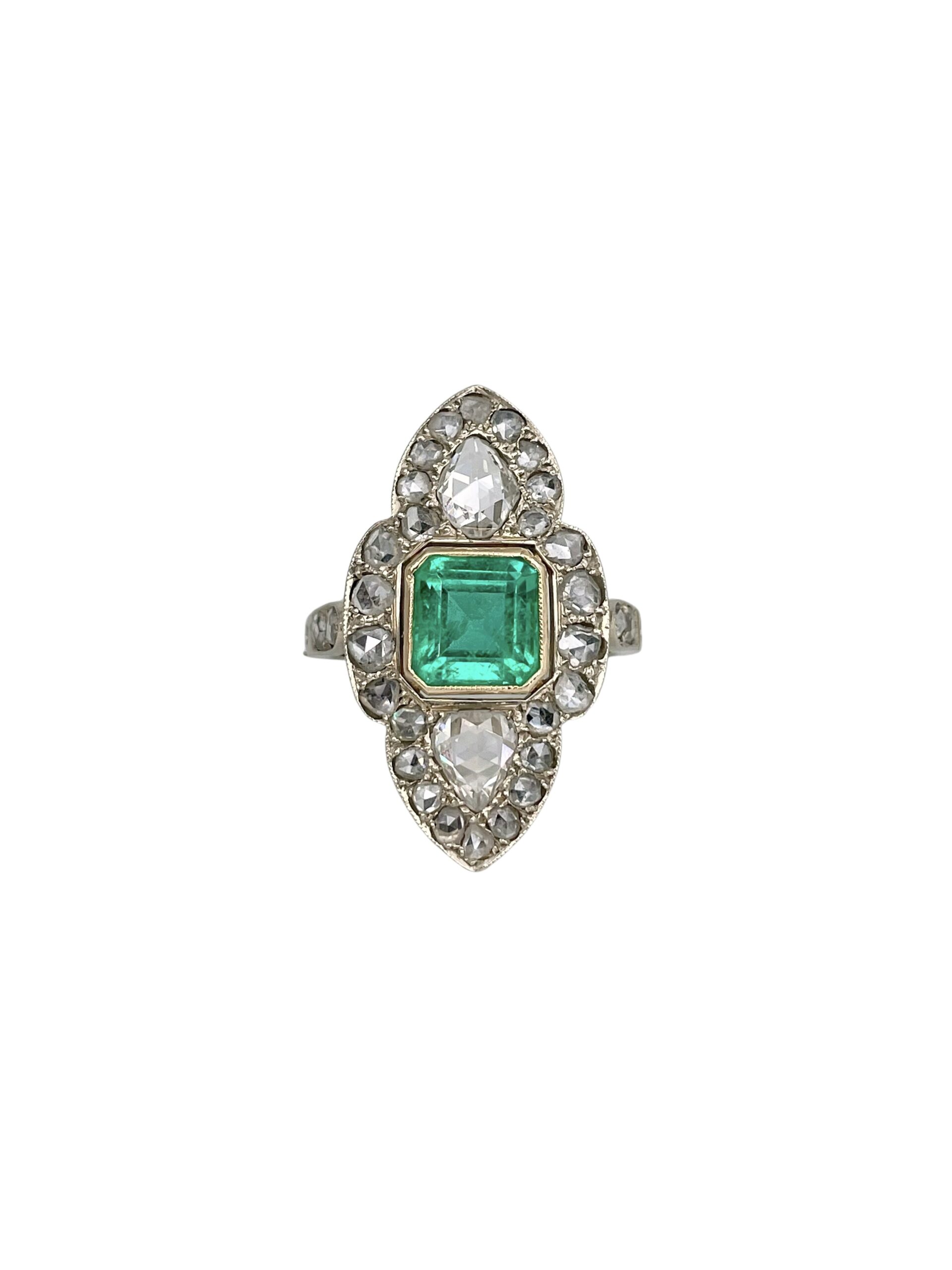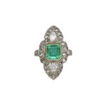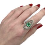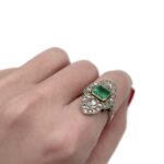 Žiedas su smaragdu ir deimantais