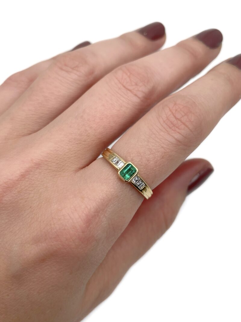 Smaragdas: 1vnt., smaragdinio šlifavimo, 0.20ct, labai silpnai melsvai žalia spalva (vslbG 4/4), P1