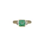 Žiedas su smaragdu ir deimantais
